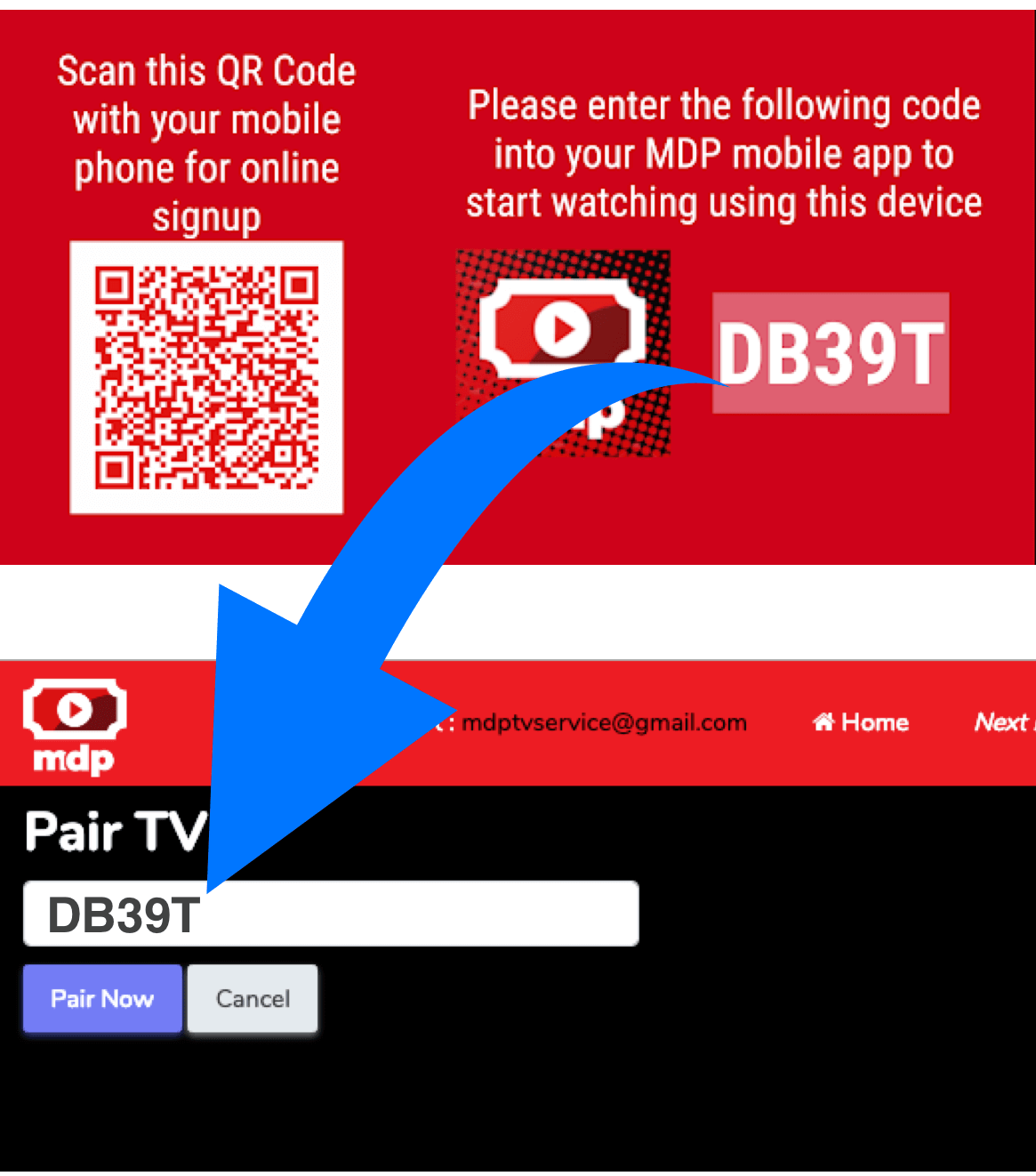 - Enter the code shown by your TV into the box above and click “Pair Now”.